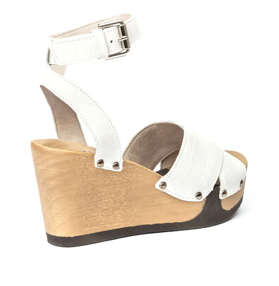 Welch Sommertraum! Die Breite Kreuzbandage Mit Krokodilprint Kommt Auf Der Biegsamen Holzsohle Bestens Zur Geltung Und Zieht Alle Blicke Auf Sich. Die Keilpantoletten Sind Trotz Ihrer Höhe So Bequem, Dass Frau Sie Am Liebsten Gar Nicht Mehr Ausziehen Würde. Jetzt Fehlt Nur Noch Eine Paperbag Short, Ein Schmal Geschnittenes Oberteil Sowie Eine Xxl-Sonnenbrille – Schon Kann Der Ausflug In Die Stadt, Natürlich Mit Einem Abstecher Zur Eisdiele, Beginnen!