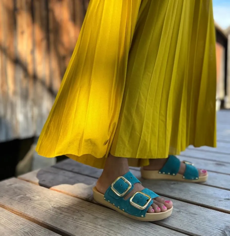 SOFTCLOX Lena Kaschmir Pacificgreen (Natur)-Frau Pantoletten